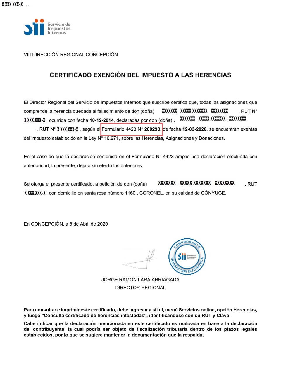 Código Certificado Exención :